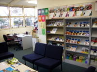 | F図書館外観 G図書館内部 図書館の蔵書数は約3万冊。コンピュータが33台設置されておりいつ でも利用可能。本の検索のみならず、インターネットや宿題など様々 に利用される。(昼休みにゲームをしている生徒もいた!)。授業で もよく利用される。日本の公立図書館のようにブックディテクション システムを持っていて、入り口と出口が別になっている。 |